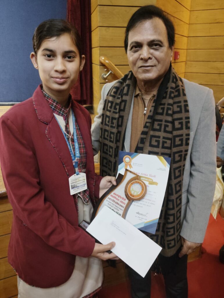 कोरबा। हिन्दी विकास संस्थान, नई दिल्ली द्वारा आयोजित अंतर्राष्ट्रीय हिन्दी ओलंपियाड–2025 प्रतियोगिता में डी.ए.वी. पब्लिक स्कूल, कुसमुण्डा (जिला–कोरबा, छत्तीसगढ़) की कक्षा 9वीं की छात्रा कु. लावण्य प्रधान ने उत्कृष्ट प्रदर्शन करते हुए स्वर्ण पदक, राष्ट्रीय हिन्दी प्रतिभा सम्मान एवं नकद पुरस्कार प्राप्त कर विद्यालय तथा जिले का नाम गौरवान्वित किया है।
