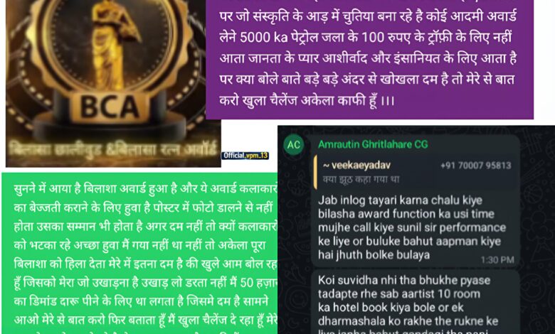 इस पूरे मामले के सामने आने के बाद बिलासा छोलीवुड अवार्ड्स 2026 को लेकर इंडस्ट्री में नई बहस छिड़ गई है। अब देखना होगा कि इस विवाद पर कार्यक्रम के आयोजकों या अन्य कलाकारों की ओर से क्या प्रतिक्रिया सामने आती है।
