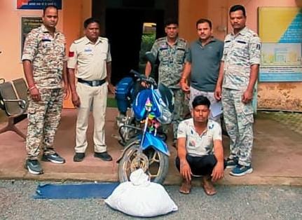 प्रकरण में 07 अक्टूबर को मोटर व्हीकल कार्यवाही के दौरान घटनास्थल ग्राम चनामुड़ा , मणिकंचन केंद्र के सामने मेन रोड पर एक नीला रंग के बजाज डिस्कवर मोटर सायकिल में सवार होकर आरोपी 4.860 किलोग्राम अवैध मादक पदार्थ गांजा बिकी हेतु तस्करी करते मिला था। मौके पर आरोपी के विरूद्ध धारा 20 (बी) एनडीपीएस एक्ट के विधिवत कार्यवाही कर बरमकेला पुलिस ने आरोपी को गिरफ्तार कर उसे आज माननीय न्यायालय में पेश किया , जहां से उसे न्यायिक रिमाण्ड पर जेल भेज दिया गया। उपरोक्त कार्यवाही में थाना बरमकेला के थाना प्रभारी उप निरीक्षक अजीब कुमार बेक के नेतृत्व में सउनि० ओमप्रकाश राजपूत , प्रधान आरक्षक चित्रसेन देवांगन , भुवनेश्वर पण्डा , आरक्षक दिनेश चौहान , मिनकेतन पटेल एवं थाना के अन्य स्टाफ तथा साइबर सेल प्रभारी सारंगढ़ का सराहनीय योगदान रहा।
