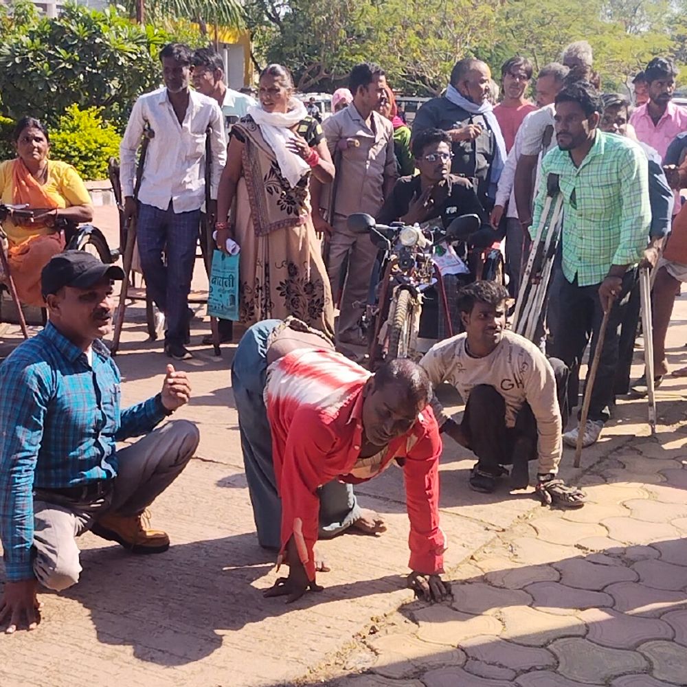 अशोकनगर में विकलांगों ने निकाली पैदल रैली: डेढ़ घंटे में 2 किमी तक चले, कलेक्ट्रेट पहुंचकर संयुक्त कलेक्टर को सौंपा ज्ञापन