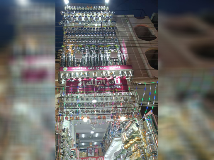 इंदौर के बर्तन बाजार में एक बर्तन की दुकान सिर्फ अपने डिस्प्ले के कारण फेमस है। वैसे तो नाम से ही समझ में आता है कि इस बाजार में बर्तन बिकते होंगे। लेकिन इस बजार को एक खास दुकान के कारण भी पूरे शहर में पहचाना जाता है। इस दुकान पर आपको 45 फीट की हाईट तक (तीन मंजिल) तक कई तरह के बर्तन सजे हुए नजर आएंगे। धनतेरस पर बर्तन बाजार में हजारों की संख्या में लोग खरीदी करने आते हैं। इस दौरान दुकान की सजावट देखने और फोटो भी लेते है। खास बात यह कि बर्तनों का यह तीन मंजिला डिस्प्ले पूरे साल ऐसा ही रहता है।