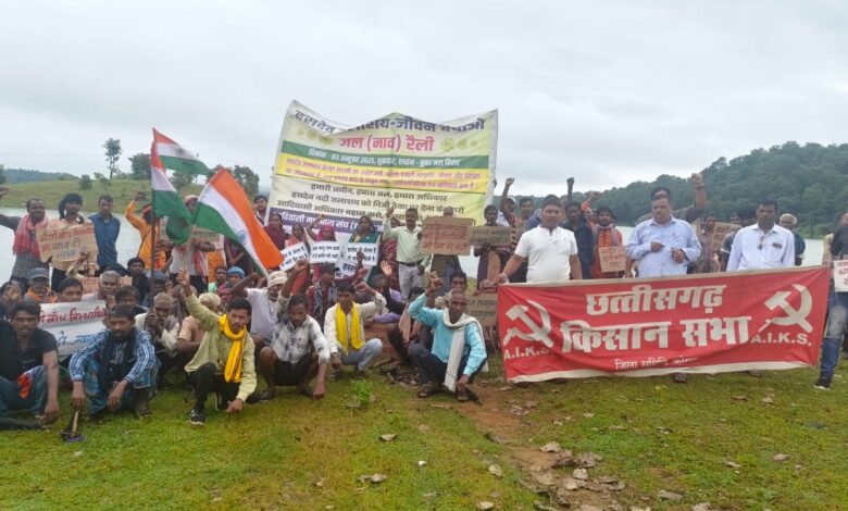 छत्तीसगढ़ सरकार की मत्स्य नीति के खिलाफ आदिवासी मछुआरों का प्रदर्शन