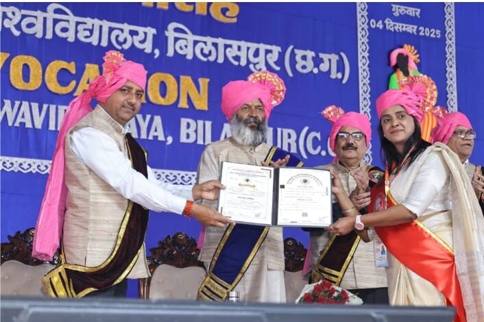 कोरबा। अटल बिहारी वाजपेयी विश्वविद्यालय बिलासपुर से जारी मेरिट लिस्ट में सत्र 2023-24 की मुख्य व सेमेस्टर परीक्षाओं में अपनी योग्यता का लोहा मनवाते हुए महाविद्यालय के 32 विद्यार्थियों ने मेरिट में जगह बनाई। बीते दिनों को बिलासपुर में आयोजित दीक्षांत समारोह में युनिवर्सिटी टाॅपर रहीं मास्टर ऑफ आर्ट्स (शिक्षा) से लता चंद्रा व मास्टर ऑफ लाइब्रेरी एंड इंफॉर्मेशन साइंस (एमलिब एंड आईएससी) में अपर्णा यादव को गोल्ड मेडल प्रदान कर सम्मानित किया गया। इनके साथ ही कमला नेहरु महाविद्यालय के 32 मेरिट स्टूडेंट्स को प्रशस्ति पत्र प्रदान किया गया। इन होनहार विद्यार्थियों की सफलता पर हर्ष व्यक्त करते हुए कमला नेहरू महाविद्यालय समिति के अध्यक्ष किशोर शर्मा, उपाध्यक्ष डॉ आरसी पांडेय, सचिव सुरेन्द्र लाम्बा, सहसचिव उमेश लम्बा एवं प्राचार्य डाॅ प्रशांत बोपापुरकर ने उज्जवल भविष्य का आशीर्वाद दिया है।