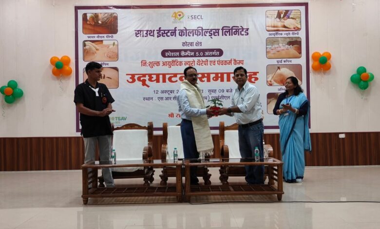 एसईसीएल कोरबा क्षेत्र में निःशुल्क आयुर्वेदिक न्यूरो थैरेपी एवं पंचकर्म शिविर का शुभारंभ