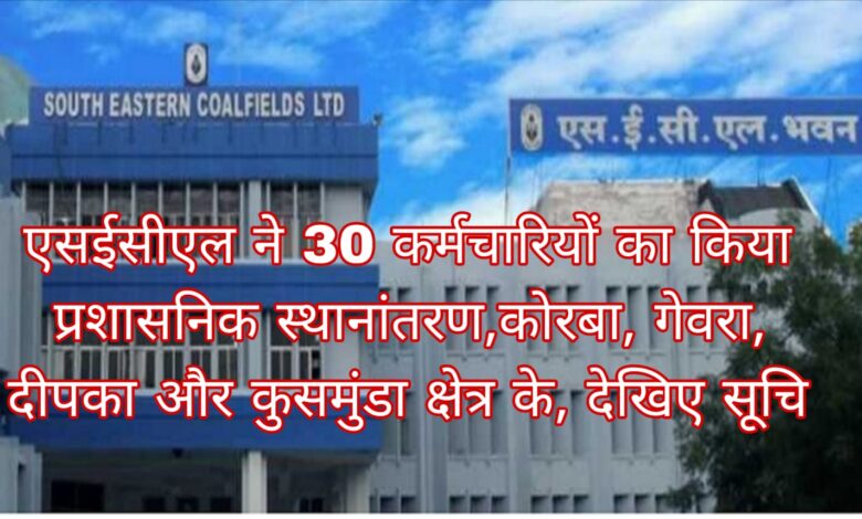 एसईसीएल ने 30 कर्मचारियों का किया प्रशासनिक स्थानांतरण : कोरबा, गेवरा, दीपका और कुसमुंडा क्षेत्र के, देखिए लिस्ट…