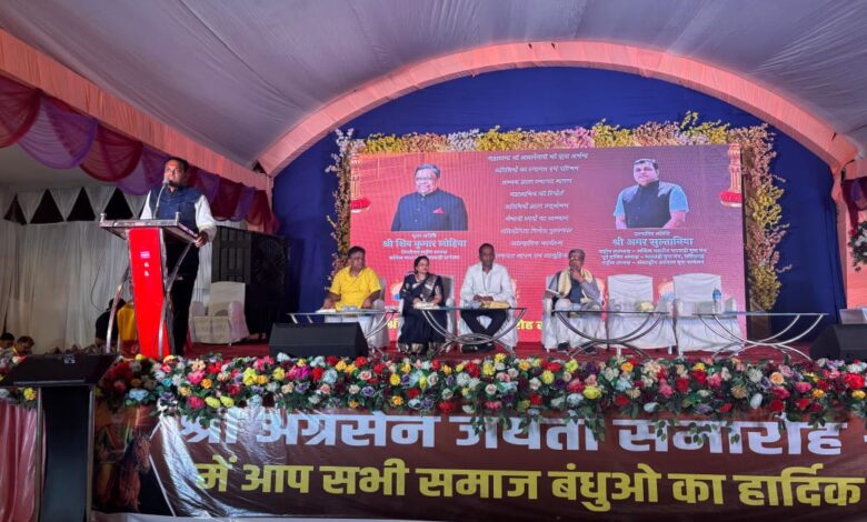 उद्बोधन में अमर सुल्तानिया ने कहा कि महाराजा अग्रसेन कर्मयोगी, लोकनायक और समाजवाद के प्रणेता थे, जिनका “एक ईंट और एक रुपया” सिद्धांत सहयोग, न्याय और समानता की अद्भुत मिसाल है। उन्होंने चिंता जताई कि पारिवारिक अशांति, सामाजिक विभाजन, पाश्चात्य सभ्यता का अंधानुकरण और संयुक्त परिवार व्यवस्था का टूटना समाज को भीतर से कमजोर कर रहा है। उन्होंने युवाओं को सही दिशा देने, बुजुर्गों का सम्मान करने और पारिवारिक मूल्यों को जीवित रखने का आह्वान किया।