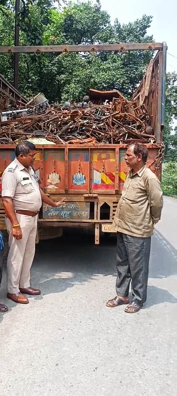 एएसआई विजय एक्का ने अपने सहयोगी आरक्षकों के साथ ग्राम पाली के पास स्थित मां काली प्लांट के समीप संदिग्ध 06 चक्का अल्ट्रा वाहन (क्रमांक CG 12 AT 5791) को रोककर जांच की। जांच के दौरान वाहन में काफी मात्रा में लोहे के छड़ और कलपुर्जों के टुकड़े लदे हुए पाए गए। जब वाहन चालक अशोक कुमार अग्रवाल, पिता स्वर्गीय मुरली लाल अग्रवाल, उम्र 52 वर्ष, निवासी बांकी मोंगरा, जिला कोरबा, से कबाड़ के दस्तावेजों की मांग की गई, तो वह कोई वैध दस्तावेज प्रस्तुत नहीं कर सका और संतोषजनक जवाब देने में असमर्थ रहा। पुलिस ने आरोपी अशोक कुमार अग्रवाल के कब्जे से 7 टन अवैध कबाड़ जिसकी अनुमानित कीमत 1,40,000 रुपये है, को जप्त किया। साथ ही, 06 चक्का अल्ट्रा वाहन (क्रमांक CG 12 AT 5791) को भी जप्त कर लिया गया है। आरोपी के खिलाफ थाना पूंजीपथरा में धारा 35(क)(ड) बीएनएसएस/303(2) बीएनएस के तहत मामला दर्ज कर लिया गया है।  इस कार्रवाई में सहायक उप निरीक्षक विजय एक्का के साथ आरक्षक उमा शंकर भगत और निर्दोष लकड़ा भी शामिल थे। जिले में अवैध कबाड़ व्यापार के खिलाफ लगातार ऐसी सख्त कार्रवाई जारी रहेगी।