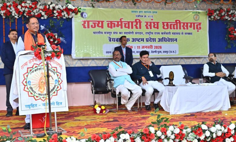 रायपुर,11 जनवरी 2026/कर्मचारी शासन-प्रशासन की रीढ़ होते हैं और उनकी ईमानदारी, कर्मठता तथा संवेदनशीलता से ही सरकार की योजनाएं, नीतियां और निर्णय वास्तविक रूप में धरातल पर उतरते हैं। छत्तीसगढ़ का प्रशासनिक ढांचा आप सभी की मेहनत, निष्ठा और अनुशासन के कारण ही प्रभावी ढंग से कार्य कर पा रहा है। मुख्यमंत्री विष्णु देव साय ने राजधानी रायपुर के रोहिणीपुरम स्थित सरस्वती शिक्षा संस्थान परिसर में राज्य कर्मचारी संघ, छत्तीसगढ़ द्वारा आयोजित त्रैवार्षिक अष्टम प्रदेश अधिवेशन को संबोधित करते हुए यह बात कही।