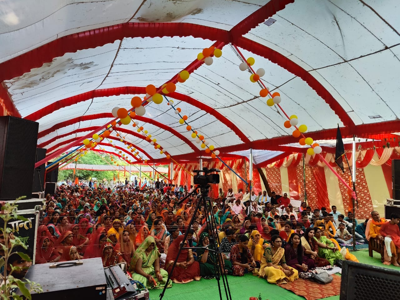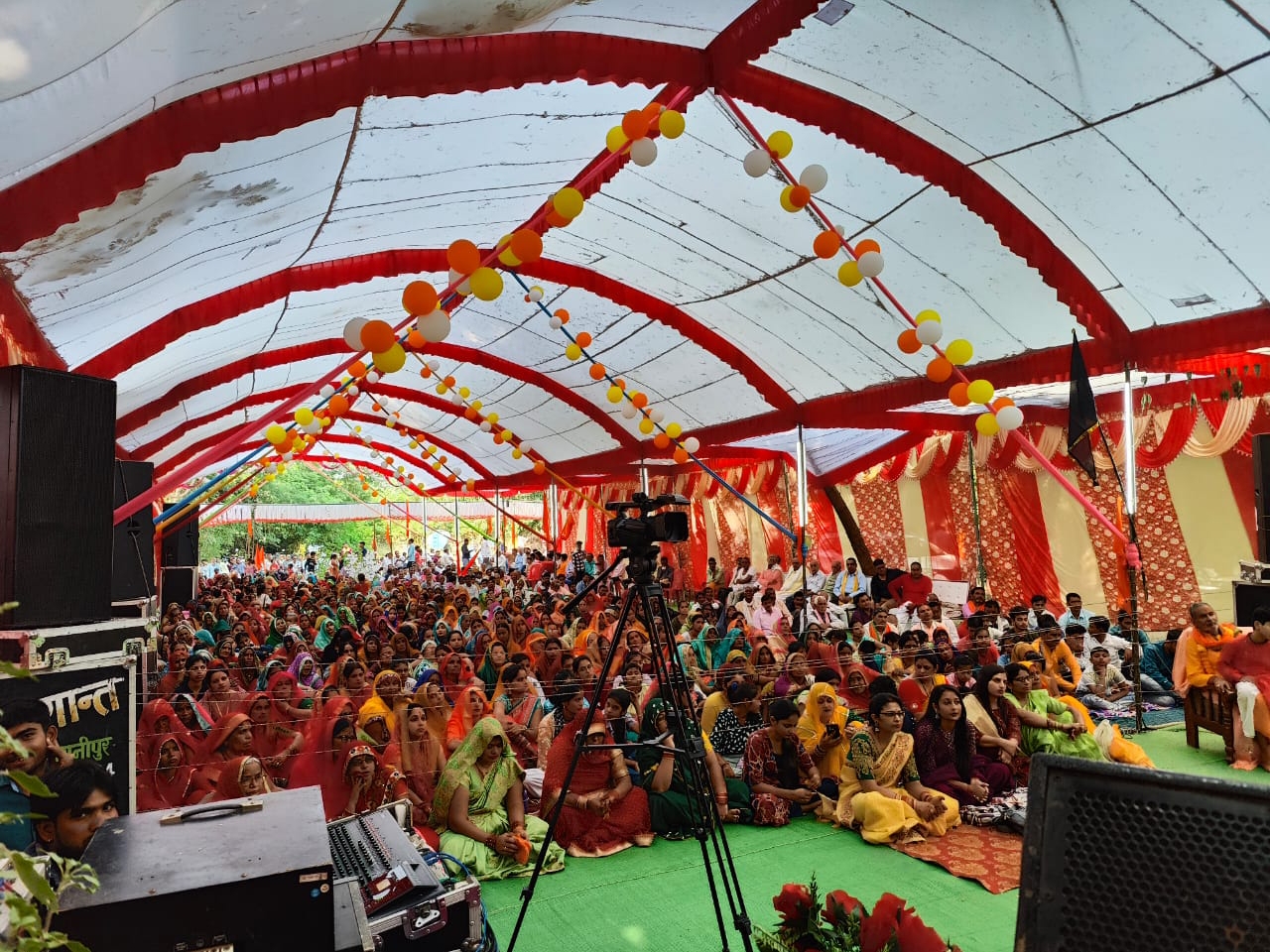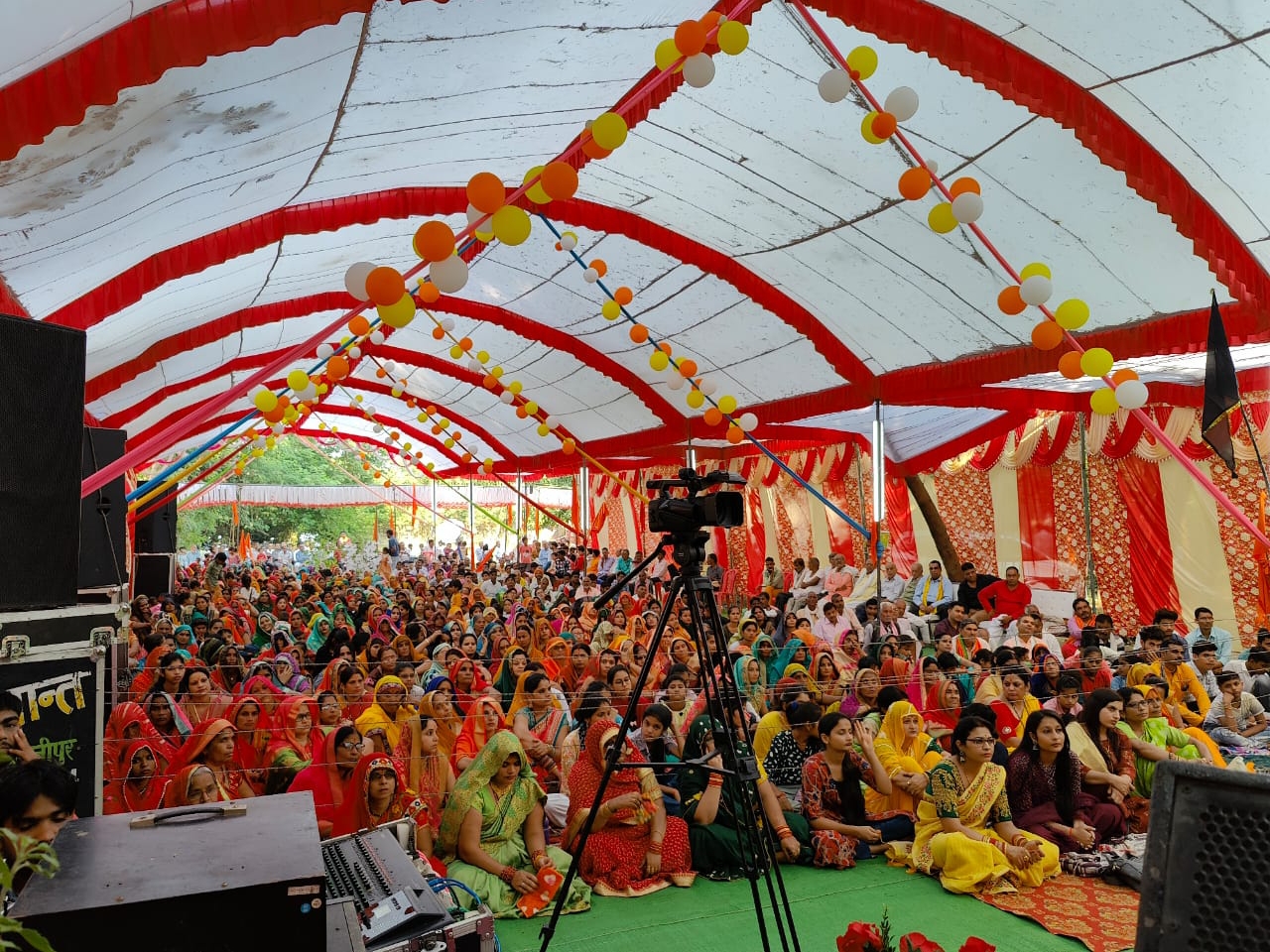 जनकपुर गांव में चल रही श्रीमद्भागवत कथा के छटवें दिन आज महंत सीताराम दास महाराज ने कंस वध और भगवान श्रीकृष्ण रूकमणि विवाह का सुंदर प्रसंग सुनाया। उन्होंने कहा कि भक्त और भगवान के मिलन का नाम ही महारास है। सतयुग, त्रेतायुग, द्वापरयुग आदि के भक्त श्रृंगार रस के माध्यम से भगवान को प्राप्त करना चाहते हैं। वह सभी भक्त कृष्ण अवतार में गोपी भाव से पधारे और महारास के माध्यम से भगवान को प्राप्त किया।