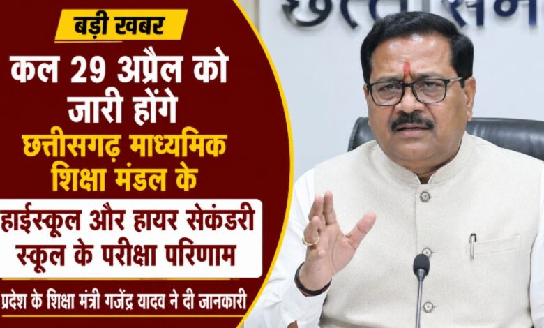 रायपुर। छत्तीसगढ़ के लाखों विद्यार्थियों का इंतजार अब खत्म होने जा रहा है। छत्तीसगढ़ माध्यमिक शिक्षा मंडल द्वारा आयोजित हाईस्कूल (10वीं) और हायर सेकेंडरी (12वीं) परीक्षा के परिणाम 29 अप्रैल को घोषित किए जाएंगे। इस संबंध में प्रदेश के स्कूल शिक्षा मंत्री गजेंद्र यादव ने आधिकारिक जानकारी दी है।