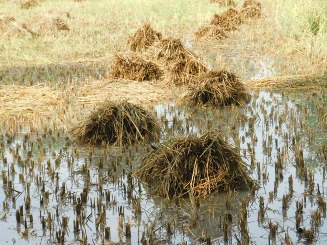करीब 10 हजार हेक्टेयर में कटाई कर खेतों में पड़ी धान बारिश में भींगने के बाद उसे सुखाने के लिए किसानों को कड़ी मशक्कत करनी पड़ रही है। तीन दिन पहले यानी मंगलवार को 5 घंटे तक हुई तेज बारिश के चलते खेतों में पानी भर गया और पानी भरने के बाद कटाई कर रखी फसलें पूरी तरह भीग चुकी हैं।