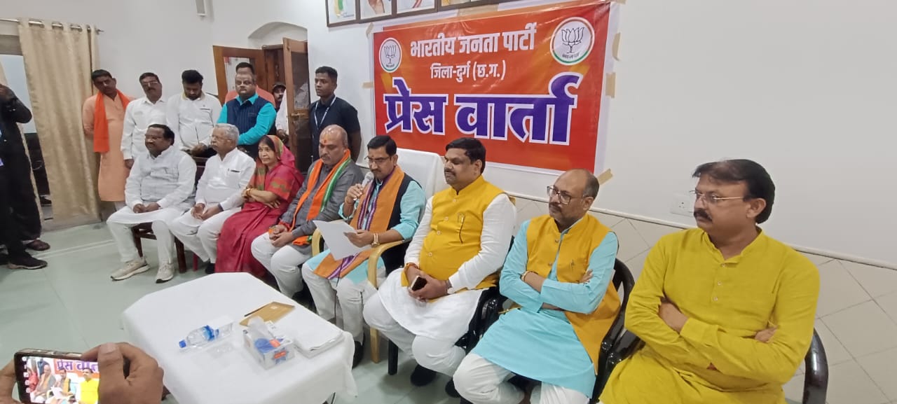 आयोजित प्रेस वार्ता में दुर्ग जिला संगठन प्रभारी राजीव अग्रवाल, भाजपा जिला अध्यक्ष जितेंद्र वर्मा, भिलाई जिला अध्यक्ष महेश वर्मा, विधायक डोमन लाल कौर्सेवाडा, ललित चंद्राकर, गजेंद्र यादव, पूर्व कैबिनेट मंत्री रमशिला साहू, पूर्व विधायक सांवला राम डहरे , जिला महामंत्री सुरेंद्र कौशिक, मीडिया प्रभारी राजा महोबिया, सह मीडिया प्रभारी राकेश दुग्गड, सोशल मीडिया जिला प्रभारी रजनीश श्रीवास्तव उपस्थित रहे। यह जानकारी राजा महोबिया जिला मीडिया प्रभारी ने दी।
