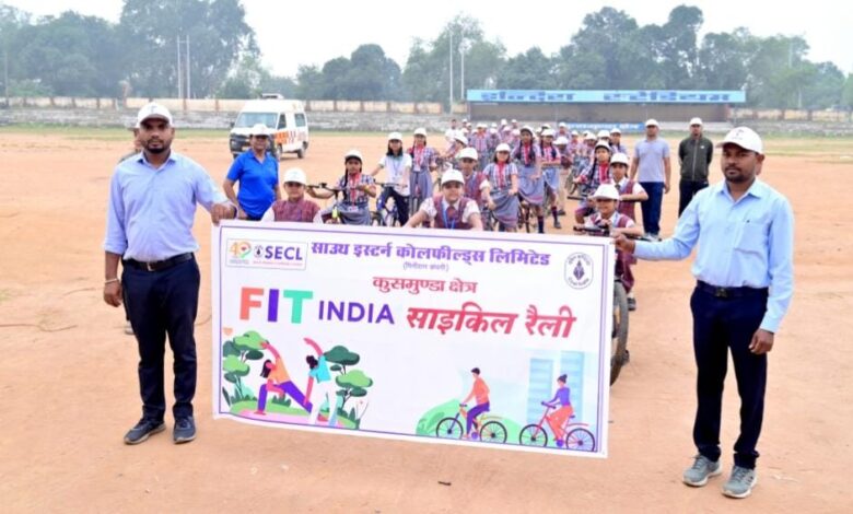 कोरबा: फिट इंडिया अभियान के तहत SECL कुसमुंडा क्षेत्र में साइकिल रैली का आयोजन