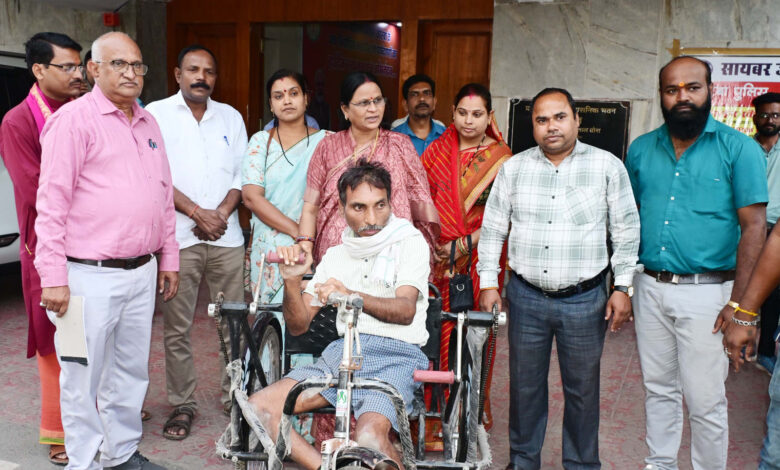 कोरबा महापौर ने दिव्यांग विरेन्द्र दास को ट्रायसिकल प्रदान की