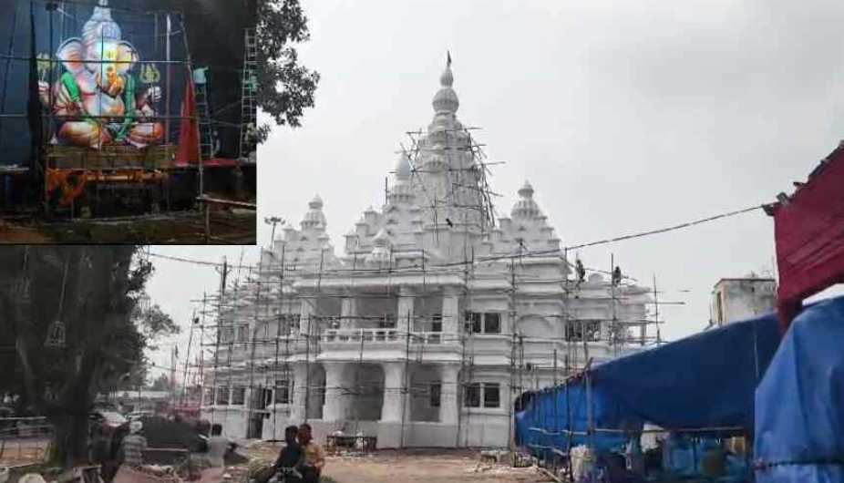 कोरबा,07 सितम्बर । कोरबा जिले के कटघोरा में गणेश चतुर्थी की धूम मची हुई है। जय देवा गणेश उत्सव समिति द्वारा वृंदावन के प्रेम मंदिर के स्वरूप में एक भव्य पंडाल बनाया गया है। इस पंडाल को कोलकाता के 20 कारीगरों ने एक महीने में 3000 बांस और थर्माकोल से तैयार किया है। पंडाल में भगवान गणेश की 21 फीट ऊंची प्रतिमा विराजमान होगी, जो पुणे के दगडूसेठ हलवाई के रूप में हैं। इसके अलावा रूद्र रूप में हनुमान जी और राधा रानी कृष्णा की प्रतिमा भी विराजमान होंगी।
