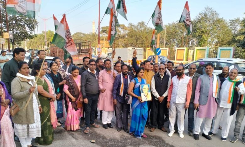 कोरबा में मनरेगा के कथित नए कानून के विरोध में कांग्रेस का प्रदर्शन, भाजपा सरकार पर गरीबों के अधिकार छीनने का आरोप