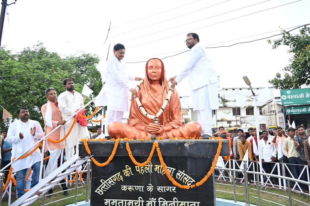 बेमेतरा । खाद्य मंत्री दयाल दास बघेल ने रविवार को बेमेतरा जिले के नगर पंचायत नवागढ़ के बस स्टैण्ड में छत्तीसगढ़ की प्रथम महिला सांसद ममतामयी मिनीमाता की पुण्यतिथि पर उनकी प्रतिमा पर माल्यार्पण कर उन्हें श्रद्धांजलि अर्पित की। कार्यक्रम सर्वोच्च गुरु असम दास जी गुरुगोसांई खपरीडीह खुर्द के सानिध्य में संपन्न हुआ।