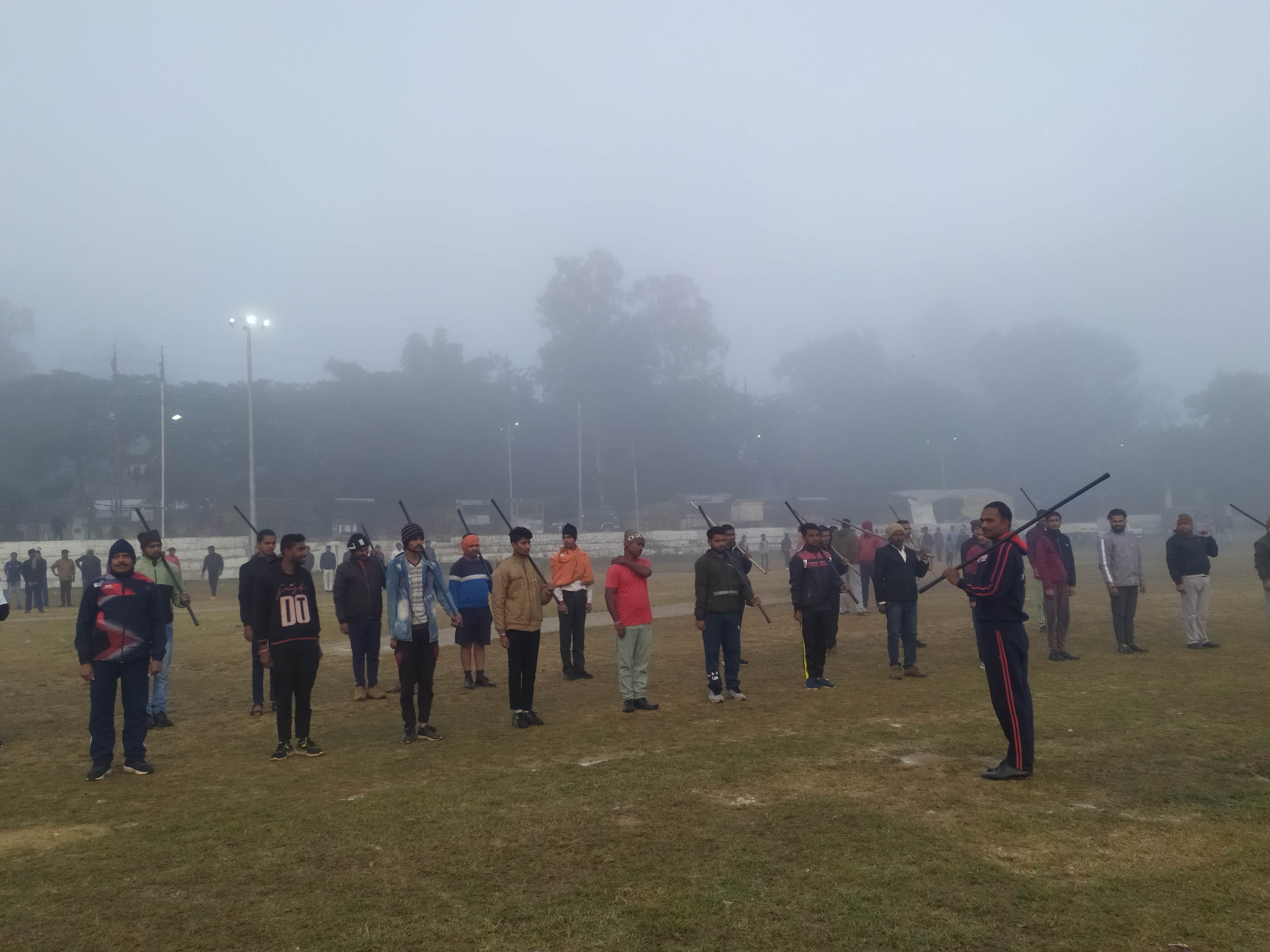 प्रशिक्षकों ने स्वयंसेवकों को दिया दण्ड प्रशिक्षण
