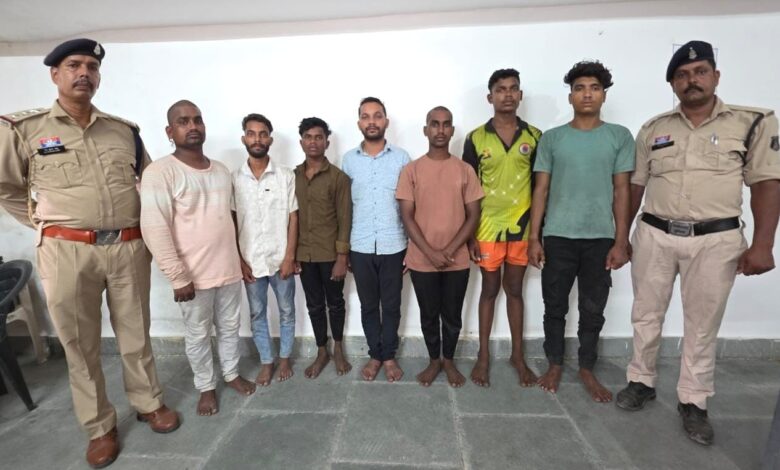 राजू उर्फ शैलेंश कश्यप उर्फ़ राजू कश्यप पिता लीलाधर कश्यप उम्र 24 वर्ष निवासी कश्यप मोहल्ला ग्राम – करही , थाना – बिर्रा , राजेंद्र कुमार साहू पिता रथ राम साहू उम्र 22 वर्ष निवासी कश्यप मोहल्ला ग्राम – करही , थाना – बिर्रा , दुर्गेश आदिल्य पिता तुलाराम आदिल्य उम्र 19 वर्ष निवासी वार्ड क्र 01 करही , थाना – बिर्रा , जितेंद्र कश्यप पिता लीलाधर कश्यप उम्र 27 वर्ष निवासी ग्राम – करही , थाना – बिर्रा , कान्हा यादव पिता राम प्रसाद यादव उम्र 20 वर्ष ग्राम – करही , थाना – बिर्रा , भास्कर मांझी पिता मोहन मांझी उम्र 24 वर्ष निवासी बाजार चौक ग्राम – करही , थाना – बिर्रा और राजकुमार साहू पिता रथ राम साहू उम्र 29 वर्ष निवासी कश्यप चौक ग्राम – करही , थाना – बिर्रा , जिला – जांजगीर-चांपा (छत्तीसगढ़)।