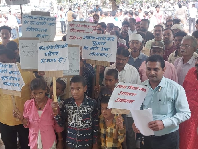 गिरफ्तारी को लेकर ज्ञापन: 20 दिन पहले हुई हत्या, आरोपियों की गिरफ्तारी को लेकर धरने पर बैठा परिवार, मिला समाज का साथ