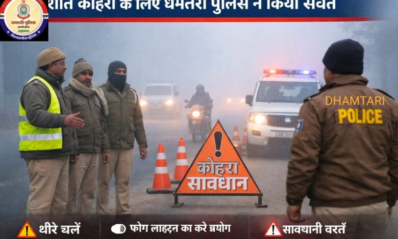 घने कोहरे में बढ़ा सड़क हादसों का खतरा, धमतरी पुलिस की वाहन चालकों से सतर्कता बरतने की अपील