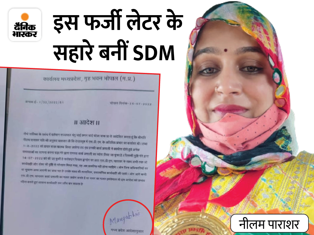 नकली एसडीएम नीलम पाराशर ने बेरोजगार से नौकरी देने के नाम पर दो लाख रुपए लिए थे। उसे कलेक्टर मनीषसिंह के नाम से फर्जी सील-साइन कर लेटर जारी किया। नीलम ने युवक को एडीएम अजयदेव शर्मा के गार्ड के रूप में नियुक्ति देने की बात लिखी थी। जब यह लेटर लेकर जब एडीएम कार्यालय पहुंचा तो वहां लेटर की हकीकत पता चली। पुलिस ने बताया कि उस वक्त मामले की गोपनीय जांच की गई थी, लेकिन नीलम तक नहीं पहुंच पाए थे। गुरूवार को नीलम के पकड़ाने के बाद पैसा देने वाले युवक योगेश को बुलाकर केस दर्ज कराया है।