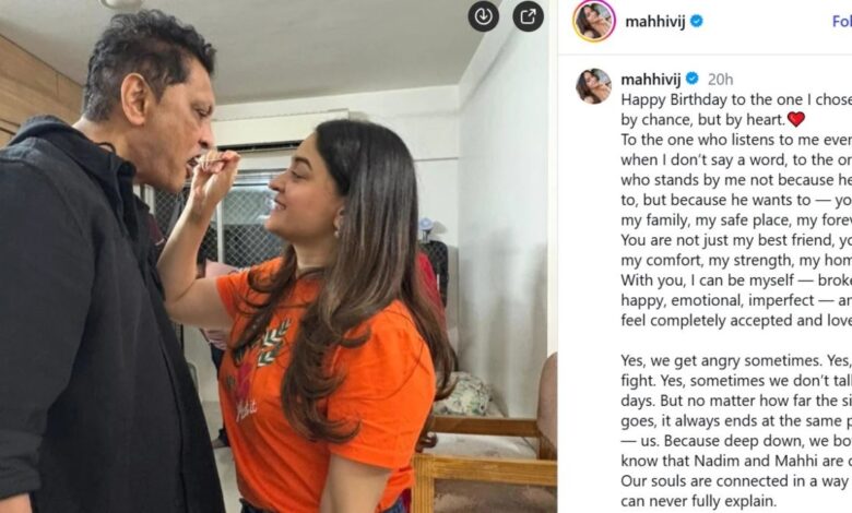 माही विज ने हाल ही में नदीम के जन्मदिन पर एक भावुक पोस्ट साझा की। इसमें उन्होंने लिखा कि नदीम उनकी जिंदगी में संयोग से नहीं, बल्कि दिल से चुना हुआ रिश्ता हैं। माही ने उन्हें अपना सुकून, ताकत और घर बताया। उन्होंने यह भी कहा कि भले ही दोनों के बीच मतभेद हों, लेकिन अंत में उनकी चुप्पी एक-दूसरे पर ही आकर खत्म होती है। माही के मुताबिक, दोनों की बॉन्डिंग इतनी गहरी है कि उसे शब्दों में समझाना मुश्किल है। पोस्ट के अंत में उन्होंने नदीम के लिए अपने प्यार का इजहार भी किया।
