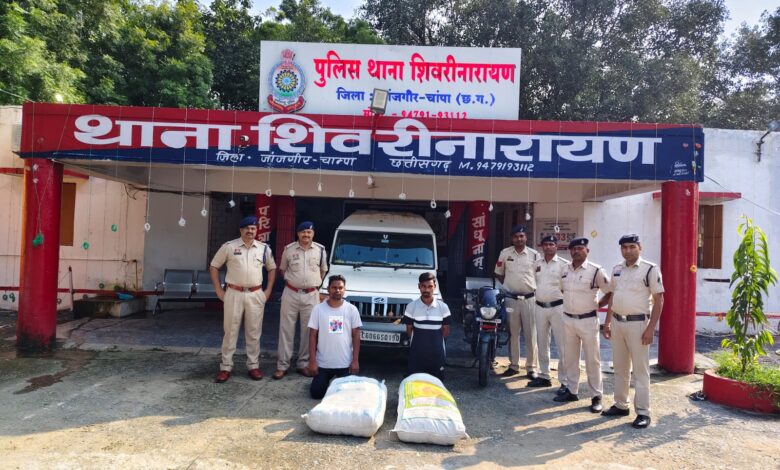जांजगीर चांपा, 25 सितम्बर । जिले के शिवरीनारायण पुलिस ने NDPS एक्ट के तहत एक बड़ी कार्रवाई को अंजाम देते हुए अंतरजिला गांजा तस्करी का पर्दाफाश किया है। पुलिस की सूझबूझ, तत्परता और साहसिक कार्यवाही से नशे के कारोबार में संलिप्त तस्करों को गिरफ्तार कर भारी मात्रा में मादक पदार्थ गांजा जब्त किया गया है।