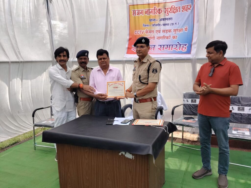 अतिरिक्त पुलिस अधीक्षक उमेश कुमार कश्यप ने इन नागरिकों को सम्मानित कर उनके कार्यों की प्रशंसा की। इस पहल से अकलतरा क्षेत्र में सुरक्षा व्यवस्था और भी मजबूत होगी।