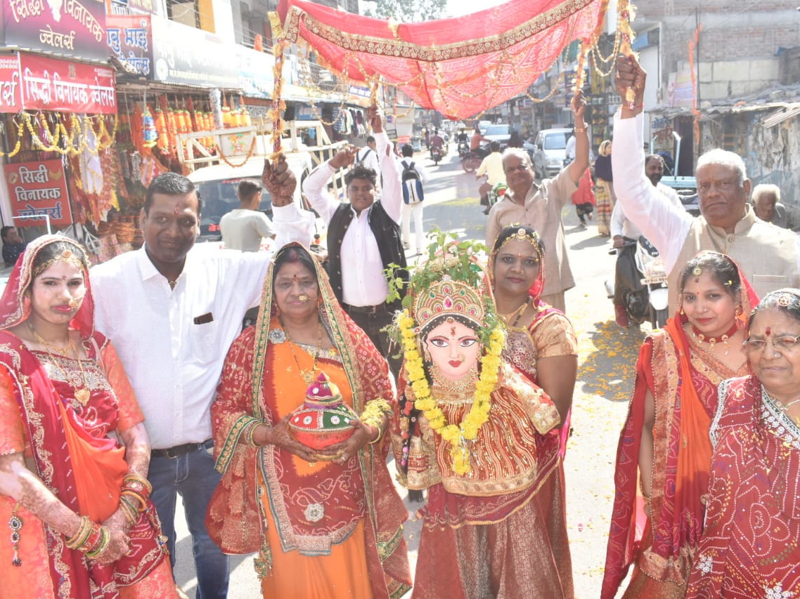 जिसके बाद कमल अग्रसेन भवन में महिलाओं द्वारा भजन-कीर्तन का आयोजन किया गया। अग्रवंशज परिवार के अध्यक्ष शैलेंद्र अग्रवाल ने बताया कि कार्यक्रम की श्रंखला में आज गुरुवार को प्रातः 8:00 बजे गणपति स्थापना की गई । व दोहपर पश्चात बारादरी अग्रवाल पंचायत भवन से भव्य कलश यात्रा निकाली गई जिसका समापन नरसिंह मंदिर पर किया गया।