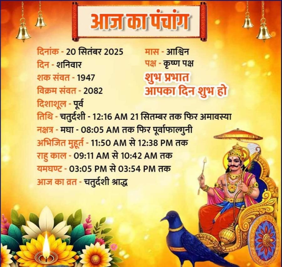 दैनिक पंचांग और राशिफल 20 सितम्बर 2025, जानिए सभी जातकों का राशिफल