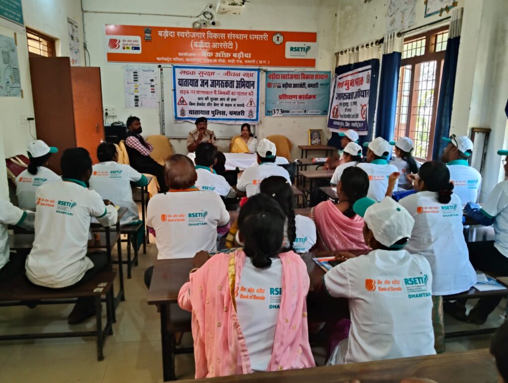 धमतरी पुलिस द्वारा आमजन को जागरूक करने के उद्देश्य से बड़ौदा आरसेटी (ग्रामीण स्वरोजगार प्रशिक्षण संस्थान) धमतरी में यातायात एवं साइबर जागरूकता कार्यक्रम का आयोजन किया गया। यह कार्यक्रम पुलिस अधीक्षक धमतरी के निर्देशन में आयोजित किया गया, जिसमें यातायात प्रभारी ने प्रशिक्षण प्राप्त कर रहे हितग्राहियों को सड़क सुरक्षा, ट्रैफिक नियमों के पालन और साइबर ठगी से बचाव संबंधी महत्वपूर्ण जानकारियां दीं।