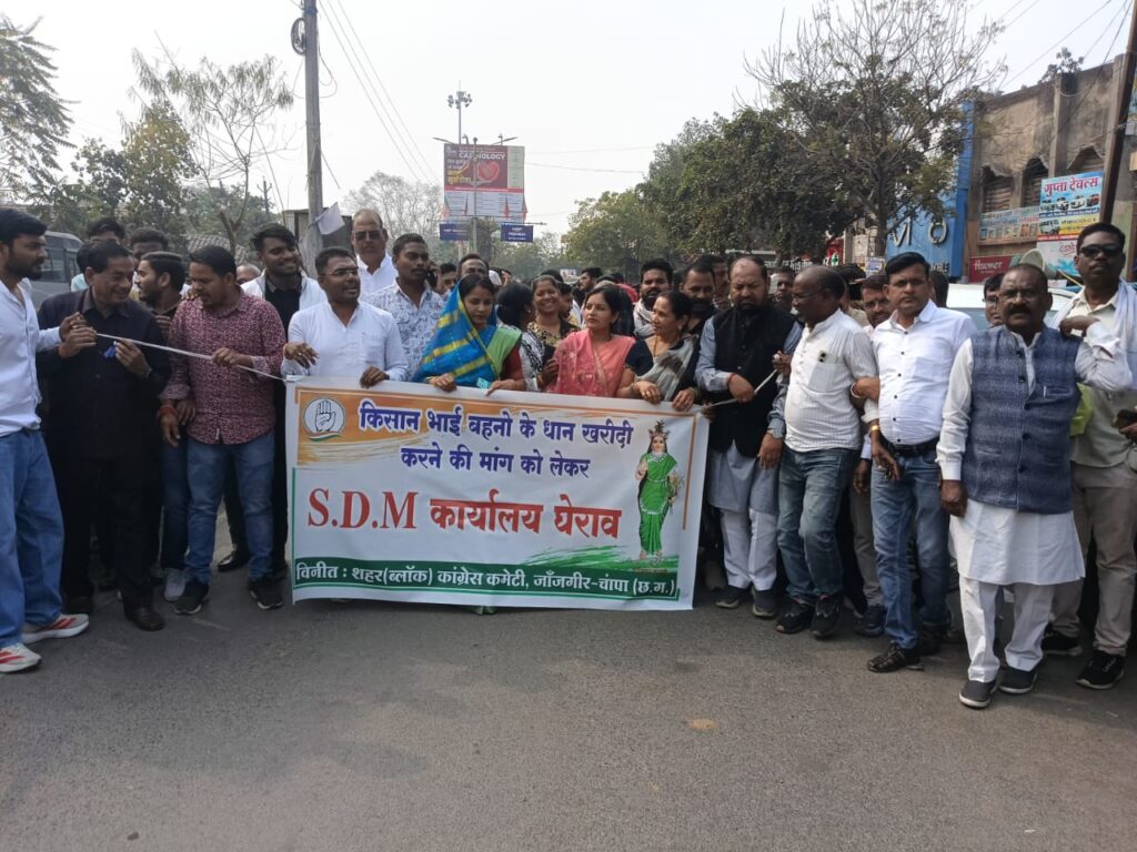 धान खरीदी में टोकन अव्यवस्था को लेकर कांग्रेस का बड़ा प्रदर्शन, जांजगीर-चांपा में एसडीएम कार्यालय का घेराव
