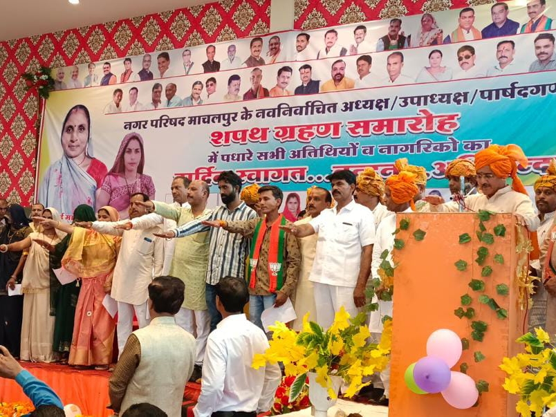 गुरुवार को माचलपुर नगर परिषद का शपथ विधि समारोह सर्राफ गार्डन में संपन्न हुआ। जिसमें सांसद रोड़मल नागर, भाजपा जिलाध्यक्ष दिलबर यादव की मौजूदगी में अध्यक्ष गीताबाई मालवीय, उपाध्यक्ष लक्ष्माबाई गुर्जर और नवनिर्वाचित पार्षदों ने जनसेवा की शपथ ली।