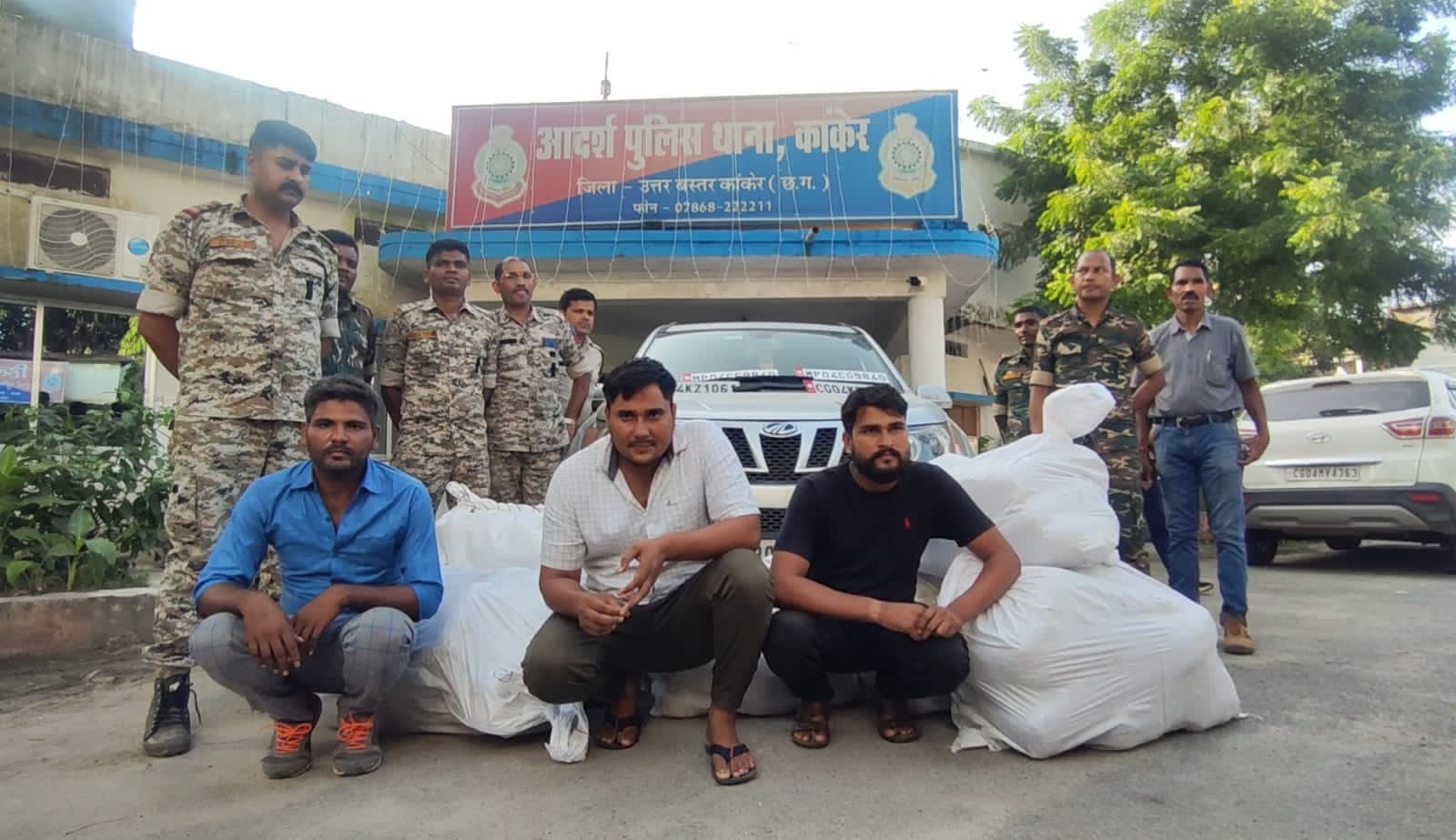 कांकेर 17 अगस्त I पुलिस अधीक्षक कांकेर शलभ सिन्हा के द्वारा मादक पदार्थ गांजा के रोकथाम एवं दिगर राज्यों से तस्करी करने वालों की पतासाजी कर कार्यवाही करने एवं नशे के काला कारोबार पर प्रभावी रूप से अंकुश लगाने के विशेष निर्देशन तथा अति . पुलिस अधीक्षक गोरखनाथ बघेल , अविनाश ठाकुर एवं अनुविभागीय अधिकारी पुलिस डॉ . श्रीमति चित्रा वर्मा के पर्यवेक्षण में अवैध मादक पदार्थों की व्यापार एवं तस्करी की रोकथाम हेतु पेट्रोलिंग एवं मुखवीर लगाकर सूचना एकत्रित की जा रही है । इसी तारतम्य में दिनांक 16.08.2022 थाना कांकेर पुलिस टीम को गोपनीय सूत्रों से विश्वनीय सूचना प्राप्त हुई कि आगरा एवं मथुरा क्षेत्र के तीन व्यक्ति महिन्द्रा एक्सयुवी कार क्र .u p 80CC 4700 में अवैध गांजा रखकर जगदलपुर से कार होते आगरा की ओर ले जाने वाले हैं ।