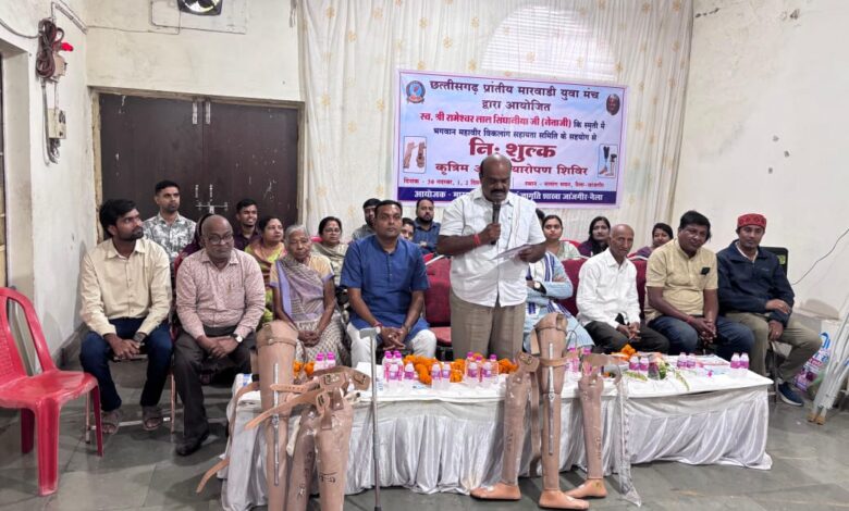 जांजगीर। मारवाड़ी युवा मंच एवं जागृति शाखा जांजगीर–नैला द्वारा स्व. रामेश्वर लाल सिंघानिया ‘नेताजी’ की स्मृति में सत्संग भवन वीआईपी सीटी के सामने आयोजित तीन दिवसीय निःशुल्क कृत्रिम अंग प्रत्यारोपण शिविर का समापन आज भावनाओं और मानवता से भरे वातावरण में हुआ।