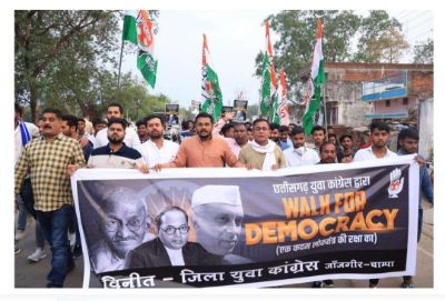 म्यूट लोकतंत्र के विरोध में युवा कांग्रेस की “वॉक फारडेमोक्रेसी पदयात्रा” सम्पन्न