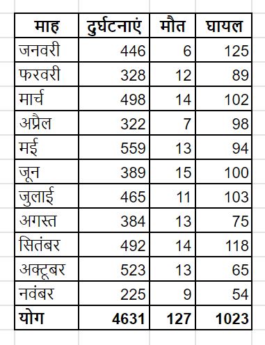 जनवरी से अब तक दुर्घटनाओं की स्थिति
