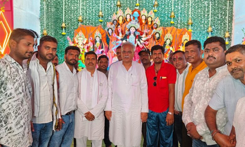 बस स्टैंड के दुर्गा पंडाल पहुंचे पूर्व मुख्यमंत्री भूपेश बघेल,माता रानी के दर्शन कर लिया आशीर्वाद