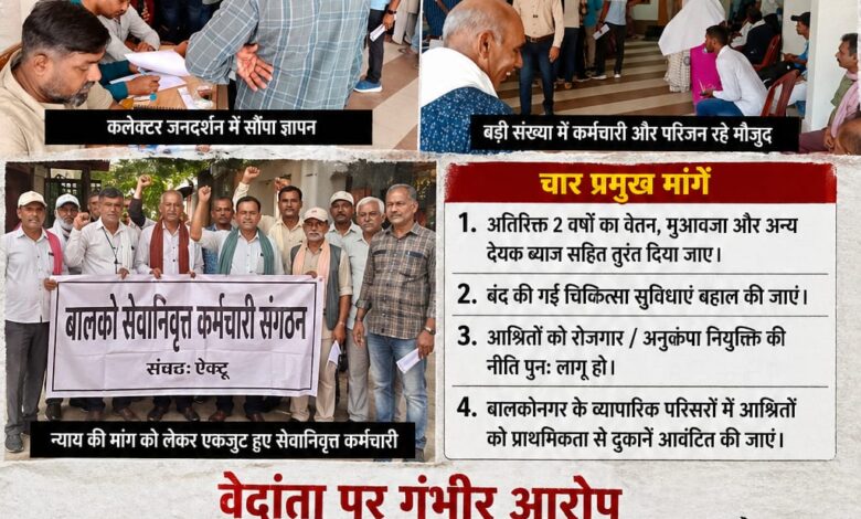 बालको के सेवानिवृत्त कर्मचारियों का फूटा आक्रोश: बकाया, इलाज और रोजगार के मुद्दे पर वेदांता प्रबंधन के खिलाफ कलेक्टर से लगाई गुहार