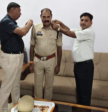 बेमेतरा पुलिस में पदोन्नति की खुशी — SSP रामकृष्ण साहू ने एएसआई द्वारिका प्रसाद देशलहरे को स्टार लगाकर किया उप निरीक्षक पद पर पदोन्नत