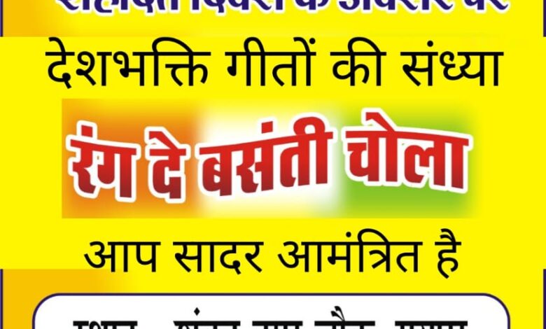 भगत सिंह जी के शहादत दिवस पर देशभक्ति गीतों की संध्या 23 मार्च को शंकर नगर चौक में