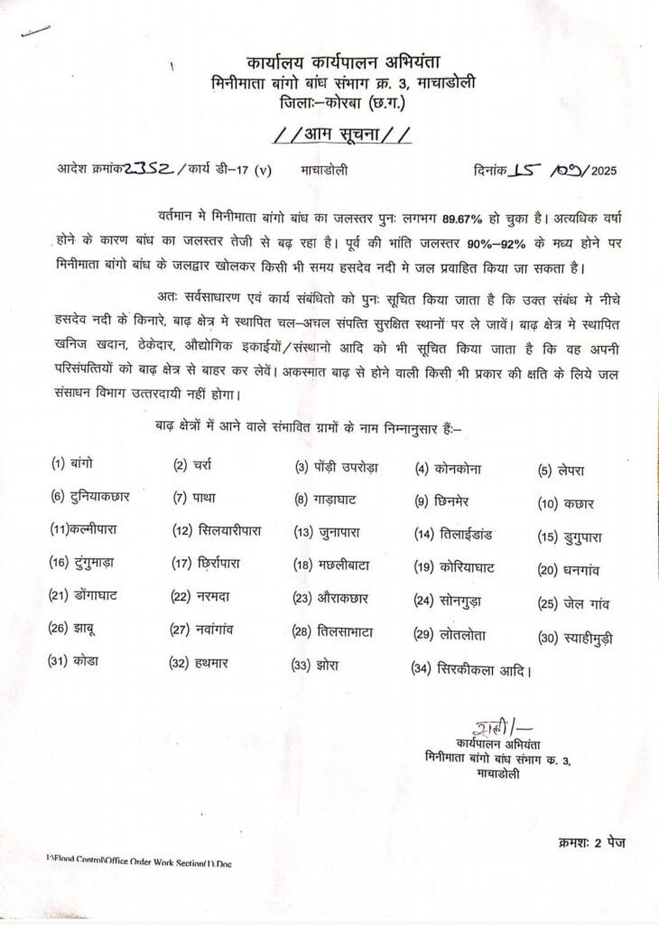 अधिकारियों ने बताया कि यदि जल की आवक इसी तरह बनी रही और जलभराव स्तर 92 प्रतिशत से अधिक पहुंचा या अत्यधिक मात्रा में पानी आने लगा, तो स्थिति को नियंत्रित करने के लिए बांध के जलद्वार (गेट) कभी भी खोले जा सकते हैं।
