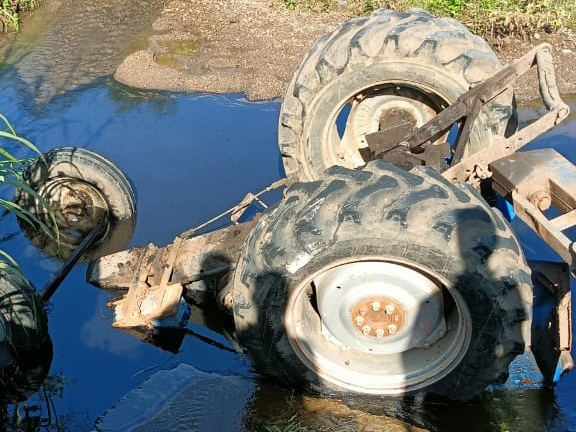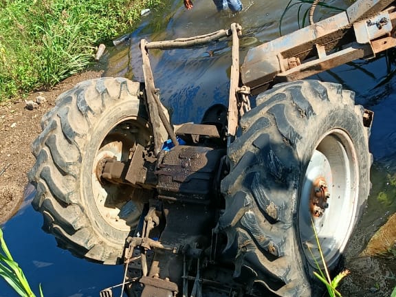 - Tractor Lost Balance, Fell Into The Drain Along With The Trolley, The Driver And Rider Narrowly Survived