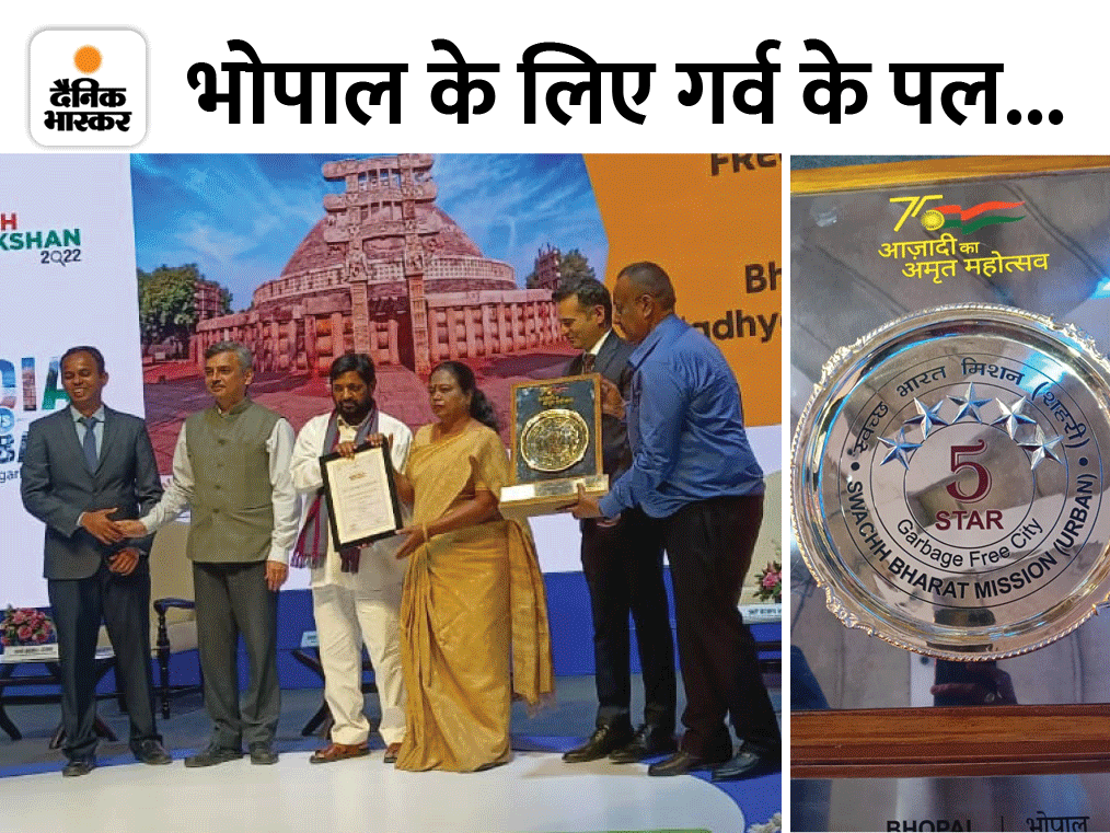 स्वच्छ सर्वेक्षण-2022 में मध्यप्रदेश की राजधानी भोपाल देश का 6वां सबसे साफ-सुथरा शहर बन गया। पिछली बार के सर्वेक्षण से अबकी बार भोपाल की रैंक में सुधर हुआ है। पिछली बार यह नंबर 7वां था। भोपाल को गार्बेज फ्री सिटी में 5 स्टॉर रेटिंग मिली है। इतना ही नहीं वाटर प्लस का खिताब भी अपने नाम किया है। इस मामले में मध्यप्रदेश में भोपाल इंदौर के बाद दूसरे नंबर पर रहा। भोपाल ने कचरे के पहाड़ भानपुर खंती को पार्क में तब्दील कर दिया, लेकिन सीवेज, पॉलिथीन का उपयोग और खुले में कचरा फेंकने जैसी समस्याओं के कारण भोपाल, इंदौर को पछाड़ नहीं पाया। 10 लाख से ज्यादा आबादी वाले शहरों में इंदौर ने जहां नंबर-1 की पोजिशन हासिल की है। वहीं, राजधानी छठें नंबर पर रहा। उसे साढ़े 7 हजार अंकों में से 6608 अंक मिले हैं। फाइव स्टॉर रैटिंग भी हासिल की है।