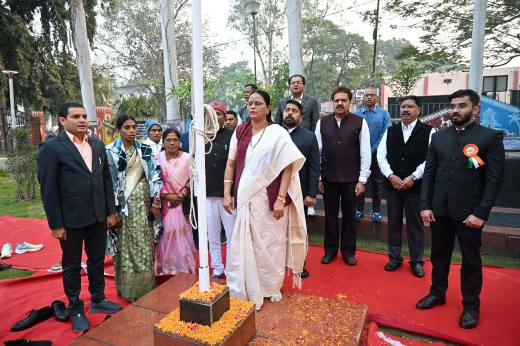 कोरबा 27 जनवरी 2026 – महापौर श्रीमती संजूदेवी राजपूत ने नगर पालिक निगम कोरबा के मुख्य प्रशासनिक भवन साकेत में आयोजित गणतंत्र दिवस समारोह में ध्वजारोहण किया। इस अवसर पर सभापति नूतन सिंह ठाकुर, आयुक्त आशुतोष पाण्डेय सहित पार्षदगण, जनप्रतिनिधिगण व निगम के अधिकारी कर्मचारी उपस्थित थे।