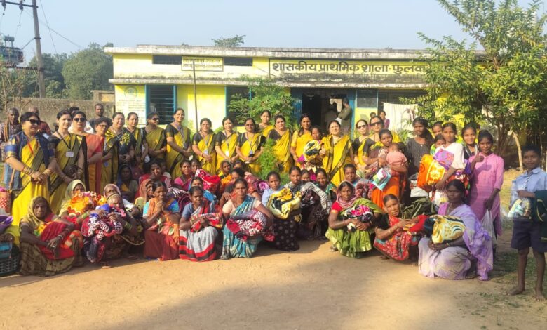 महिला कल्याण समाज एसईसीएल इंदिरा विहार बिलासपुर द्वारा जरूरतमंदों को कंबल, स्वेटर व अध्ययन सामग्री वितरित