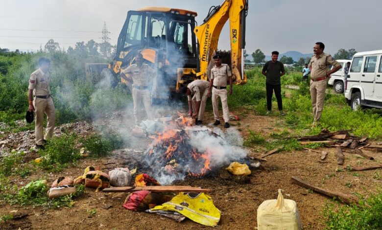 मादक पदार्थों पर सर्जिकल स्ट्राइक: पुलिस अधीक्षक की उपस्थिति में किया गया भारी मात्रा में नशे का नष्टीकरण