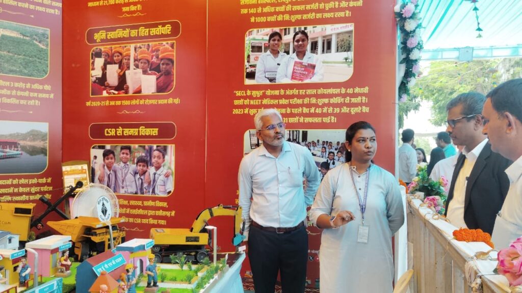 मुख्यमंत्री विष्णु देव साय ने कोरबा में आयोजित विभागीय प्रदर्शनी में एसईसीएल स्टॉल का किया अवलोकन