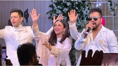 दरअसल, राघव और परिणीति की सगाई में मशहूर सिंगर और रैपर मिका सिंह ने परफॉर्म किया. सामने आए वीडियो में देखा जा सकता है कि मिका सिंह गाना गा रहे हैं और उनके साथ स्टेज पर नए लवबर्ड्स राघव और परिणीति भी दिख रहे हैं. वहीं मिका सिंह के परफॉर्मेंस पर वो दोनों थिरकते हुए दिख रहे हैं. दोनों का अंदाज कमाल का लग रहा है.